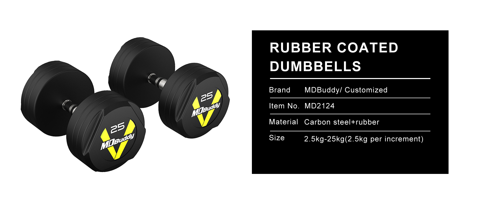 Equip your gym with MD2124, MDBuddy's extremely durable, high quality dumbbells designed for home gyms, groups or personal training sessions.