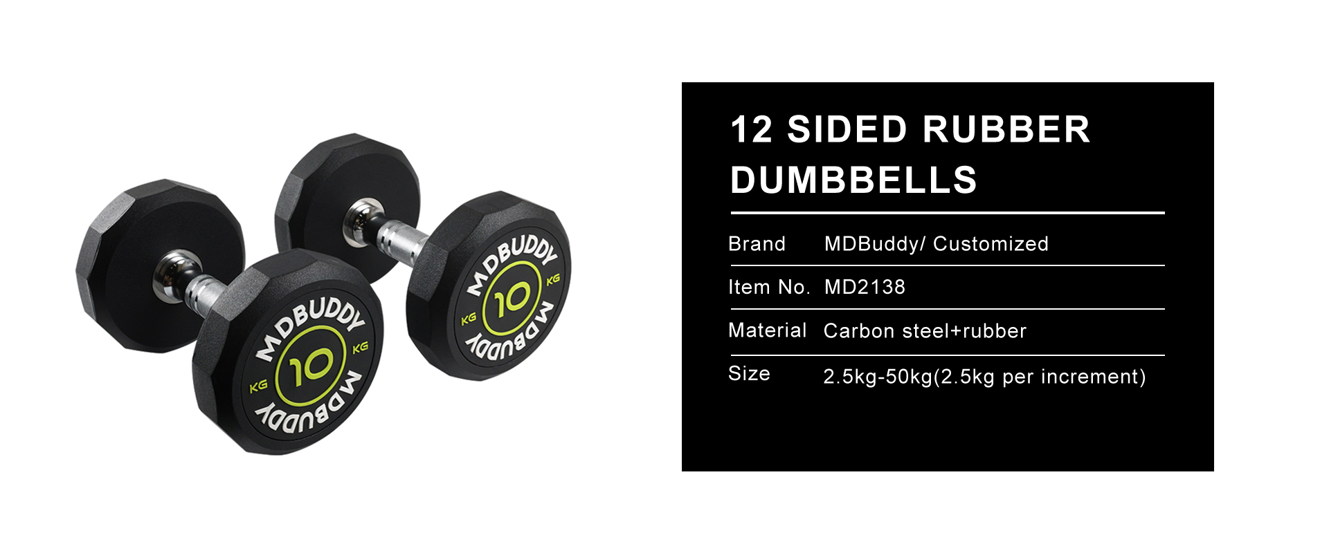 MD2138-MDBuddy 12 Side Rubber Dumbbells: