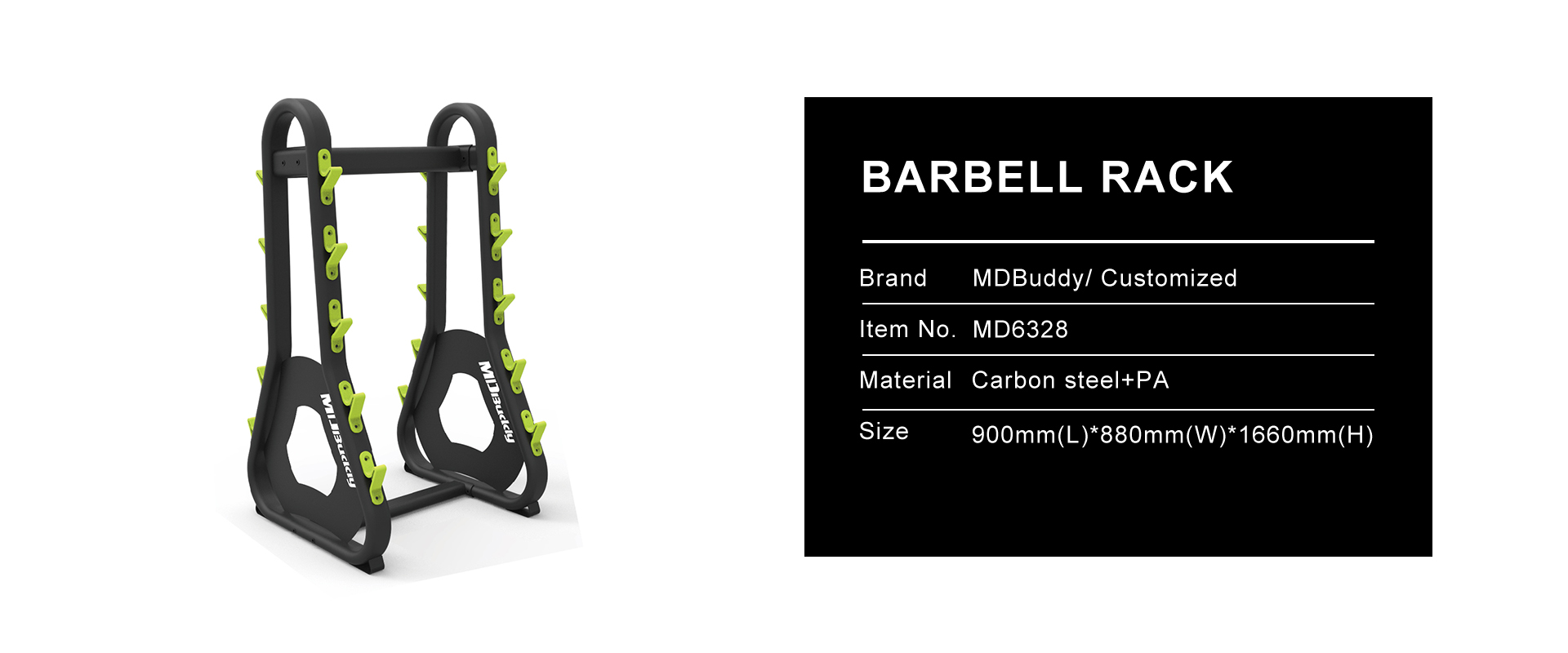 Offering heavy-duty storage, MDBuddy’s barbell storage rack also features a space-saving design. Store your barbells up off the groud now. MDBuddy's storage racks help you maximize your gym, while keep your place in order. The rack is made of heavy-duty steel for durability. We have more than 10 kinds of barbell racks for your choice.