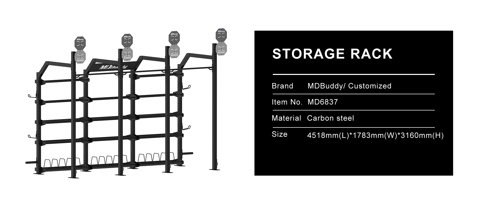 *It can not only hold appropriately sized and weighted sports equipment but also serve multiple training purposes. It can be used as a pull-up bar for strength training, as a wall for medicine ball throws, and as an anchor point for battle rope exercises, achieving both storage and fitness functions, meeting the diverse needs of home or small gym spaces.